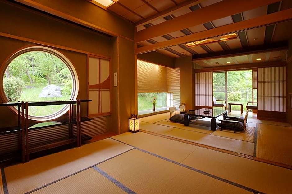 This family room's special feature is the private open-air bath. Providing free toiletries, this family room includes a private bathroom with a bath, a shower and a bidet. The spacious air-conditioned family room provides a flat-screen TV with satellite channels, tatami, a mini-bar, a tea and coffee maker as well as garden views. The unit offers 5 futons.