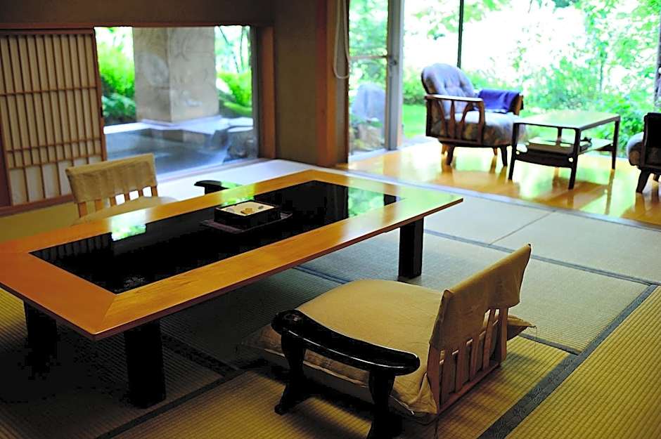 This family room's standout feature is the private open-air bath. Offering free toiletries, this family room includes a private bathroom with a bath, a shower and a bidet. The spacious air-conditioned family room offers a flat-screen TV with satellite channels, tatami, a mini-bar, a tea and coffee maker as well as garden views. The unit offers 5 futons.