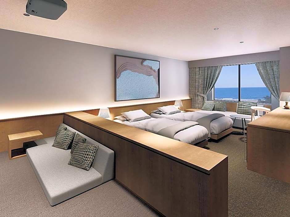 The spacious twin room provides air conditioning, an electric kettle, as well as a private bathroom featuring a bath and a shower. The twin room offers a sofa, yukata, heating, a flat-screen TV, as well as sea views. The unit offers 2 beds.