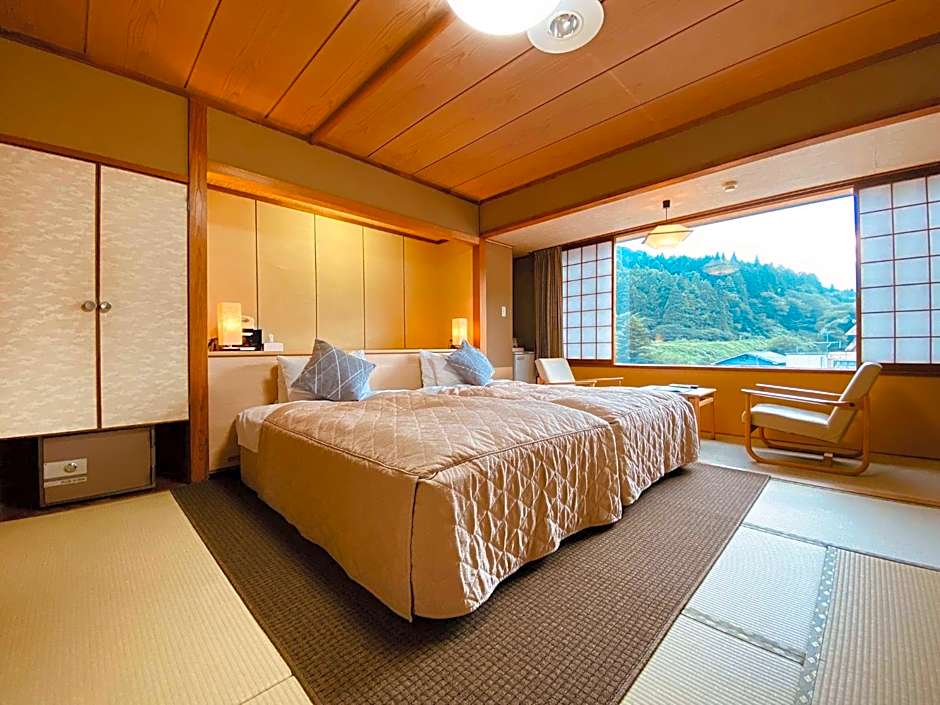 Large well-equipped Japanese-style room. Free shuttle back to the train station. Great onsen!