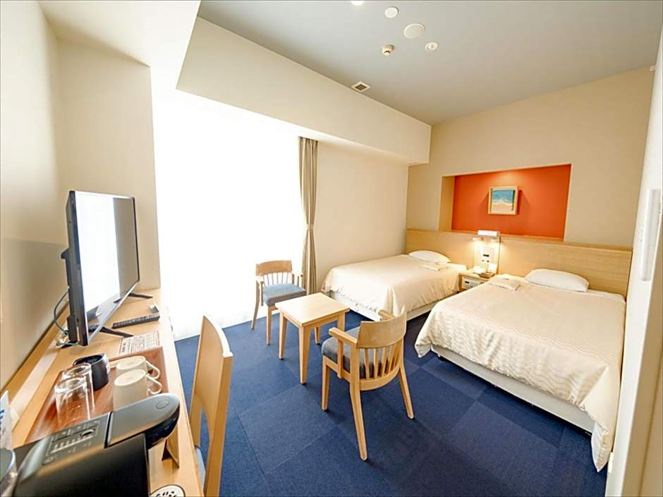 Super clean, big room with sitting area, with relaxing chair with armrests and cute little table, air conditioning is positioned well, the bed is comfortable, good quality bed linen. Very quiet. The room is pleasant to be in. Good location, there is AOEN shopping across the street, big parking. Breakfast is very good and consists mostly of Japanese food, but there are also steamed fresh vegetables: sweet potatoes, carrots, bell peppers, and some green vegetables, all of them grown locally, there are some croissants and some little sweet pastries. A lot of washing machines and driers in hotel, all of them are super clean. In the hallway is played soft relaxing music , you don’t hear it in the room.