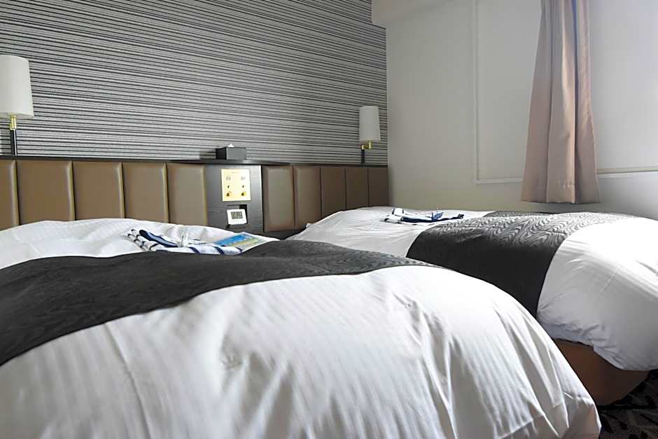 The twin room includes a private bathroom, well-fitted with a bath, a shower, a bidet, a hairdryer and slippers. The air-conditioned twin room offers a flat-screen TV, a tea and coffee maker, a carpeted floor and yukata. The unit offers 2 beds.