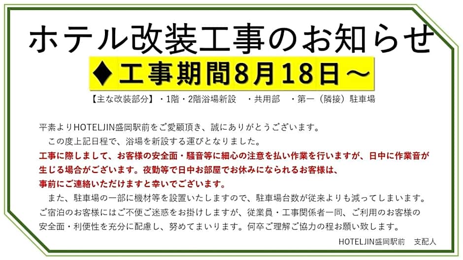 Hotel JIN Morioka Ekimae is a cheerful three-star stay in Morioka, Japan, built for travelers who want comfort with a touch of city energy. The vibe is relaxed and practical, with thoughtfully equipped rooms and a welcoming atmosphere that makes it easy to settle in after a day of exploring.