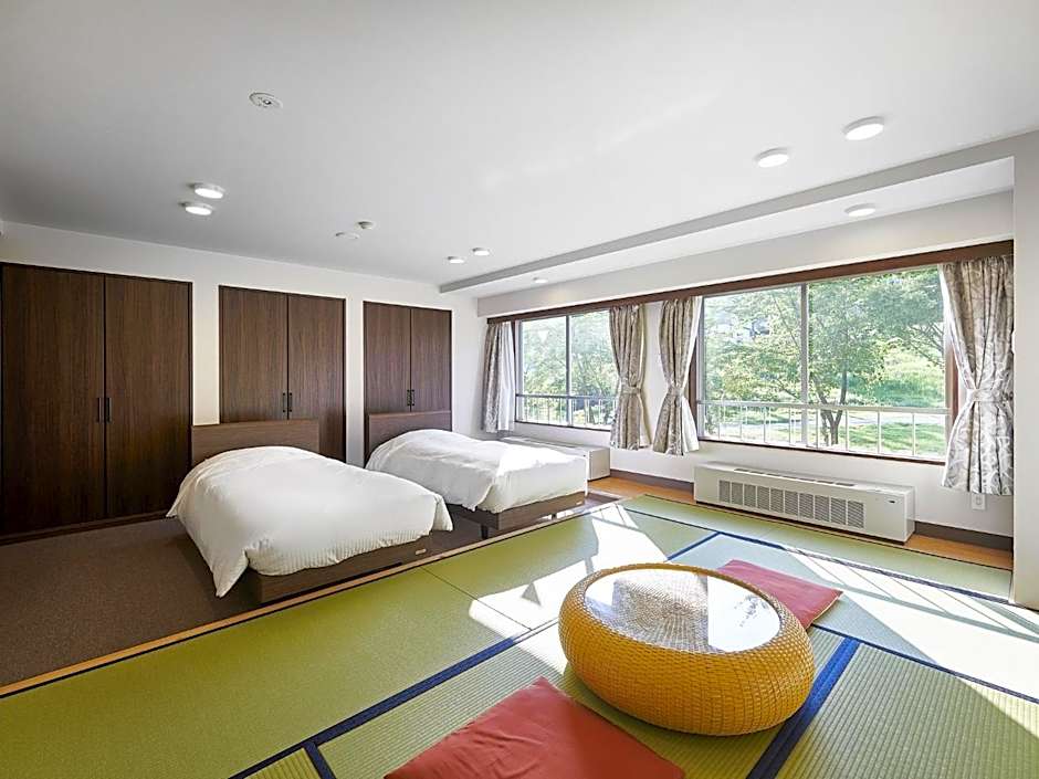The spacious quadruple room provides air conditioning, tatami, as well as a private bathroom featuring a bath and a shower. The unit offers 2 beds and 3 futons.