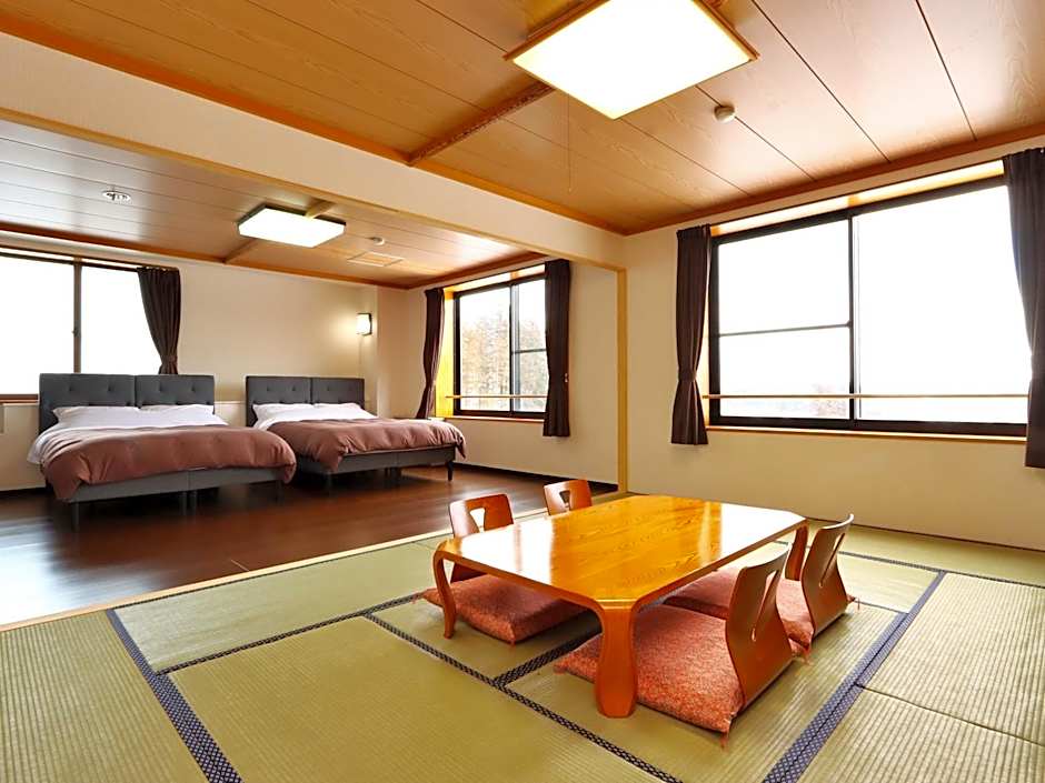 The family room offers air conditioning, tatami, a balcony with mountain views as well as a private bathroom boasting a bath. The unit has 5 futons.