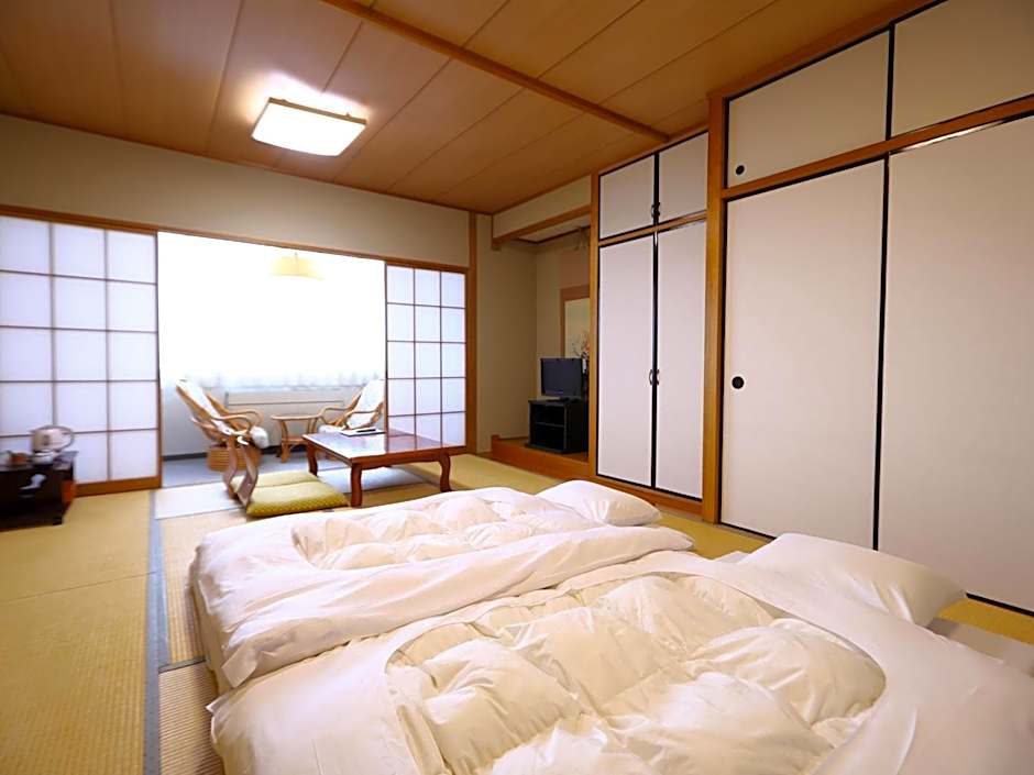 Offering free toiletries, this quadruple room includes a private bathroom with a bath, a shower and a bidet. The quadruple room has tatami floors, a seating area with a flat-screen TV, air conditioning, a tea and coffee maker as well as mountain views. The unit has 4 futons.