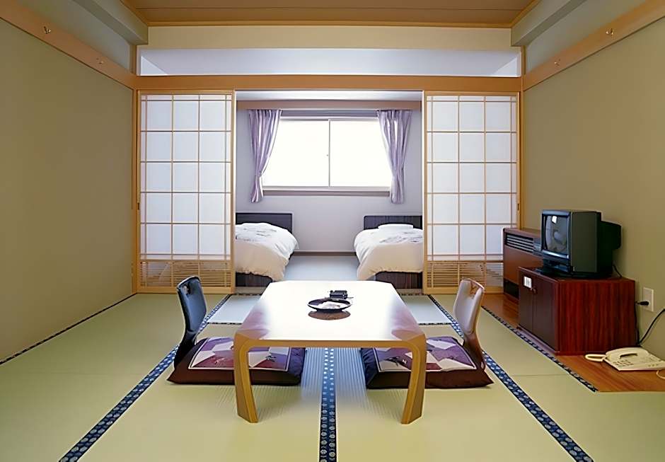 This room features Western beds and a tatami (woven-straw) seating area, where some guests can sleep on Japanese futon bedding. A flat-screen TV, a fridge and a private toilet are included, and Japanese Yukata robes and toothbrush sets are provided for all guests. An private bathroom is available.