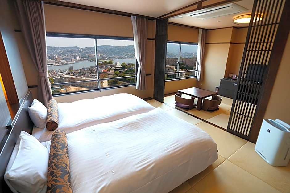 Payment is flexible, with cash accepted and major cards—Mastercard, JCB, Visa, and UC—supported. On-site conveniences include free private parking and a complimentary shuttle service, making it easy to explore Nagasaki before retiring to a non-smoking room.