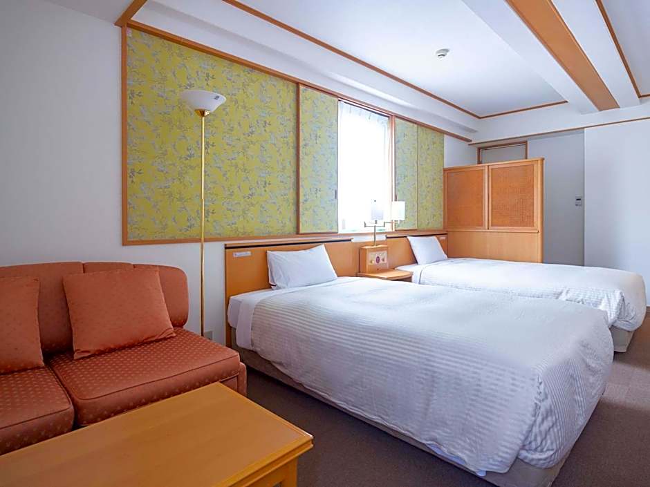 The twin room includes a private bathroom, well-fitted with a bath, a shower, a bidet, a hairdryer and slippers. This twin room is air-conditioned and has a seating area with a flat-screen TV, soundproof walls, a tea and coffee maker, a sofa, as well as a carpeted floor. The unit has 2 beds.