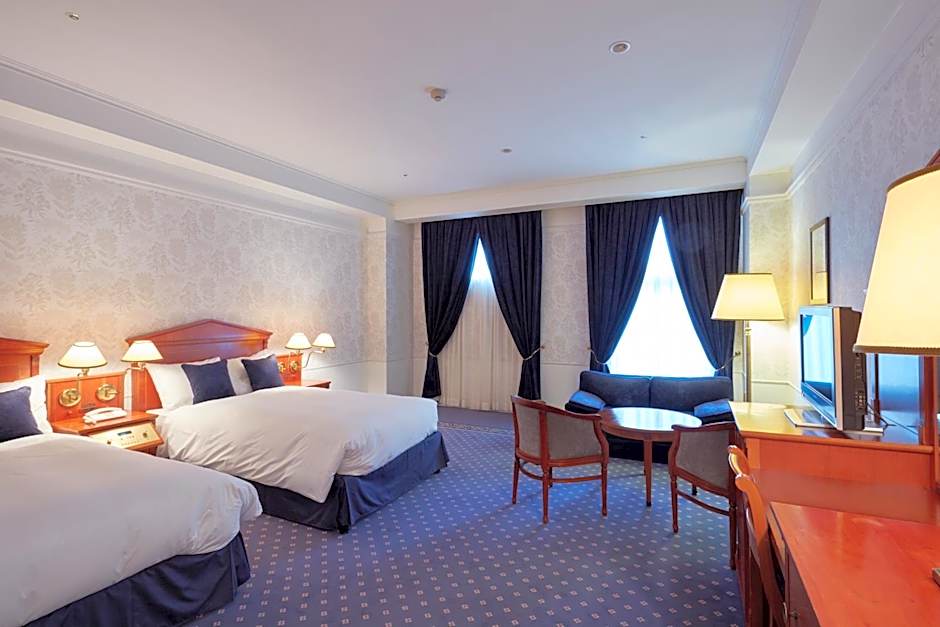 This twin room has a seating area, electric kettle and air conditioning. Rooms are decorated with flower patterns and various colors including green and navy blue. A Simmons bed is equipped. Guests can enjoy views of Omura Bay, night views and views of a European-style town.