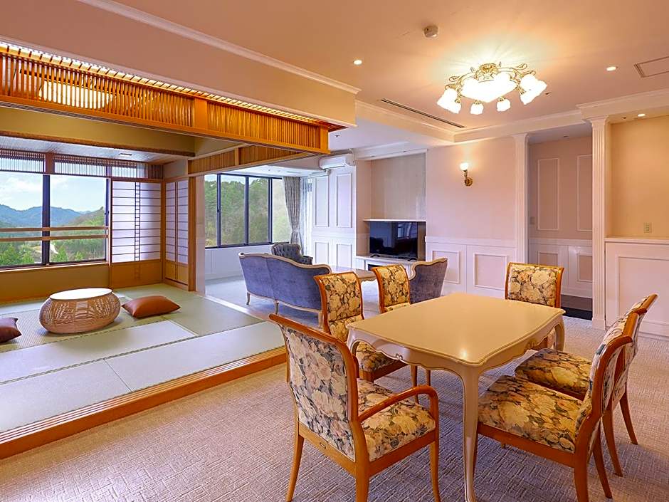 A gorgeous, elegant, luxurious Hotel, surrounded by gorgeous mountains and forests, with a fantastic spa (onsen), with outdoors and indoors facilities, and sauna. There is also dinner - as well as breakfast opportunity, which is recommended as nearest town is a 40 minutes drive, with infrequent public transport. The dinner and breakfast are both exceptionally good quality and very generous - 'eat as much as you wish', a very high quality, buffet style service.