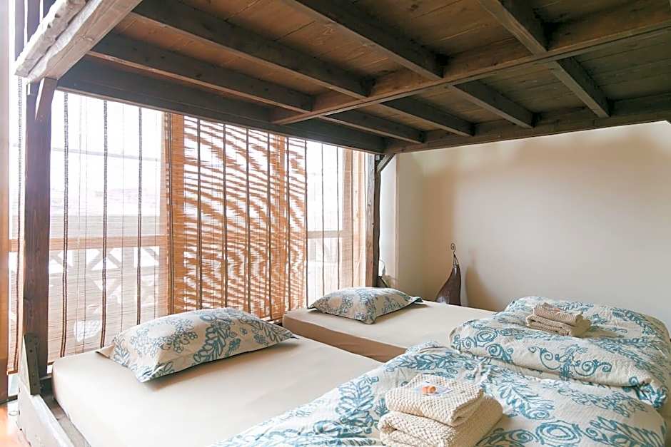 The fully equipped kitchen features a stovetop, a refrigerator, an oven and a microwave. The quadruple room offers air conditioning, tatami, as well as a shared bathroom featuring a shower and a hairdryer. The unit offers 4 futons.
