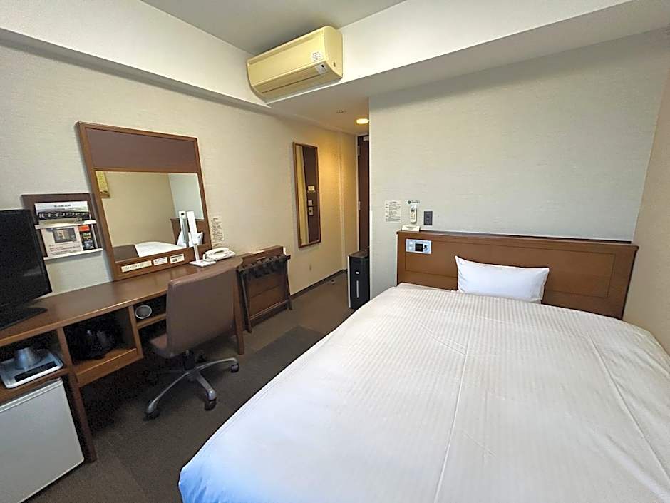 Hotel Route-Inn Nagoya Sakae offers a variety of room types including single rooms, twin rooms, and small double rooms. Single rooms accommodate 1 adult and 1 child, while twin rooms and small double rooms accommodate 2 adults and 2 children. The rooms are available in both smoking and non-smoking options, with bed sizes ranging from twin beds to double beds.