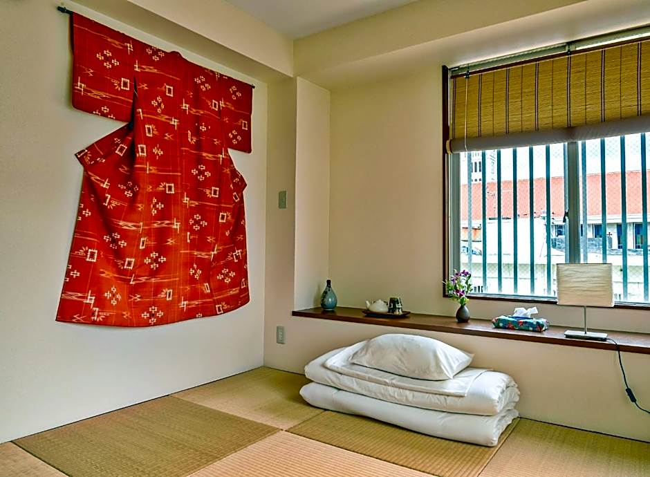 Overall the experience at this accommodation exceeded our expectations. It was slightly out of season (November) and we had the whole flat to ourselves during the night. The lady who took care of us was very attentive, we had a very good conversation, and the breakfast was hearty and delicious. The dining room is tastefully decorated, with tables made of antique sawing machines. The location was a walking distance from the main street (Kokusai dori).