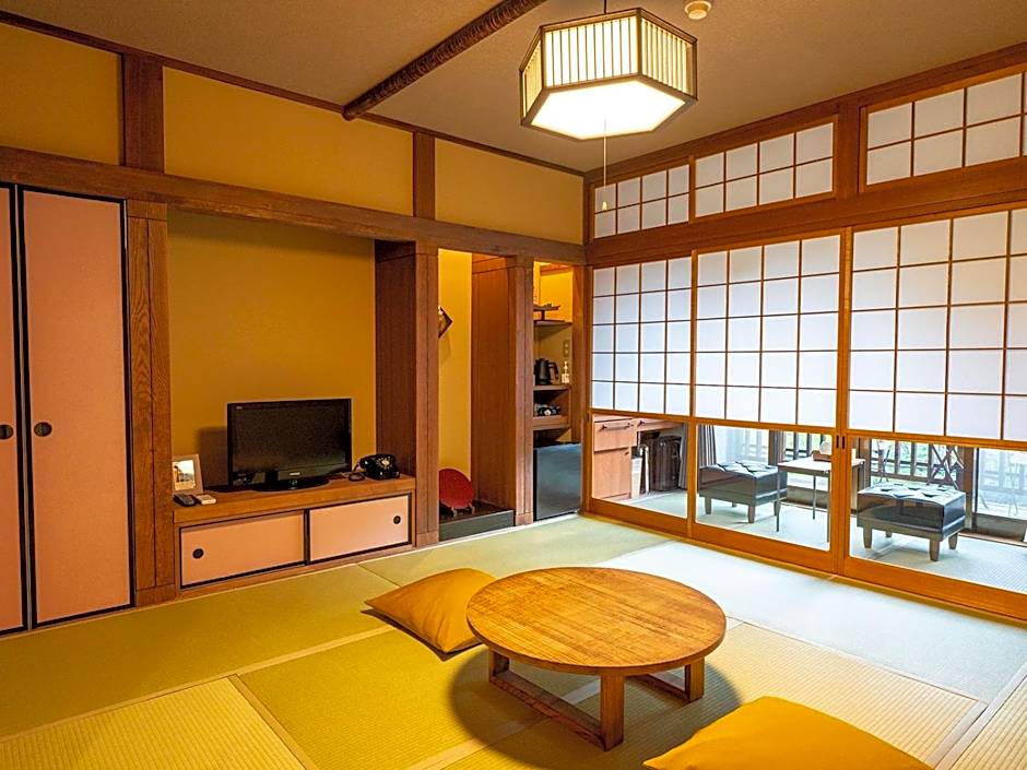 Indulge in the various amenities provided, including free private parking, Wi-Fi, air conditioning, and hot spring baths. Relax in the traditional Japanese-style rooms with a touch of modern comfort such as a balcony or terrace to enjoy the picturesque surroundings. For those looking to stay active, there's even a tennis court on-site, though extra charges may apply.