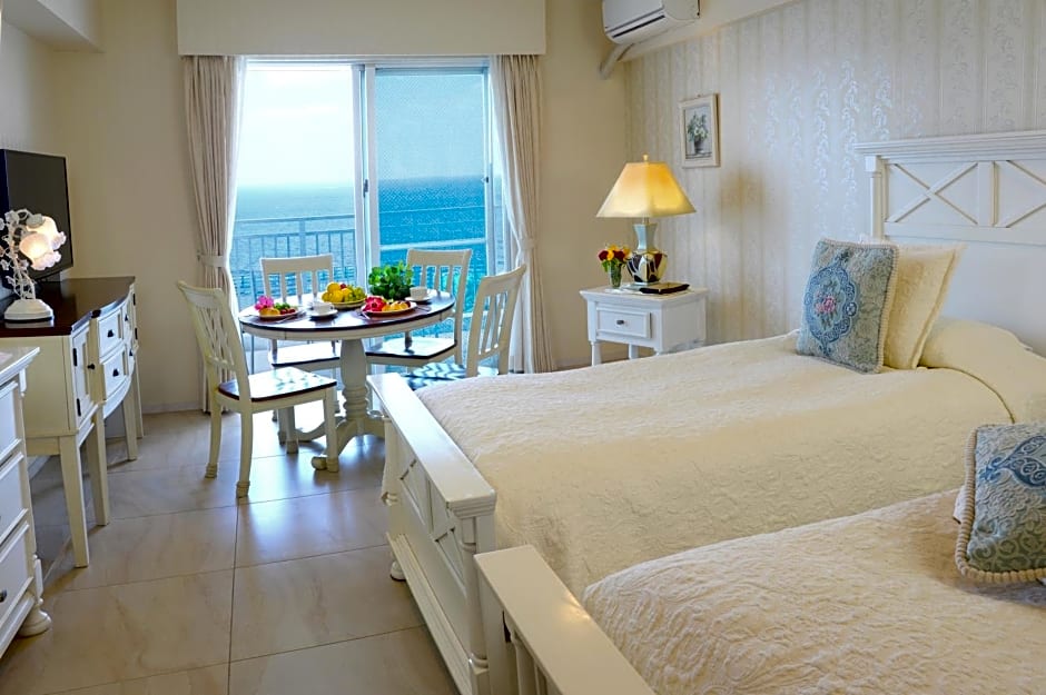 This room offers an ocean view. The room features beds with a low rebound mattress and down quilt bedding. An extra bed will be prepared for the 3rd guest.