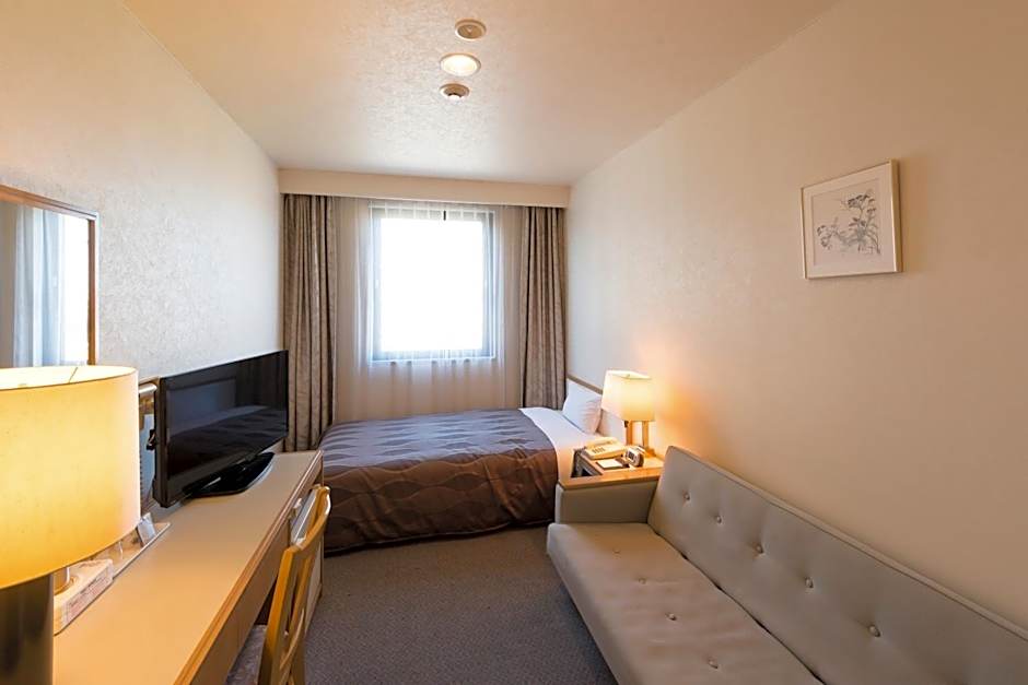 Sky Hotel Namerikawa offers a variety of room types including Double Rooms, Single Rooms with Sofa, Twin Rooms, and Deluxe Twin Rooms. The rooms range in size from 161 sqft to 409 sqft. Smoking is allowed in some rooms while non-smoking options are also available. The rooms accommodate either single occupancy or double occupancy and feature queen or twin beds.
