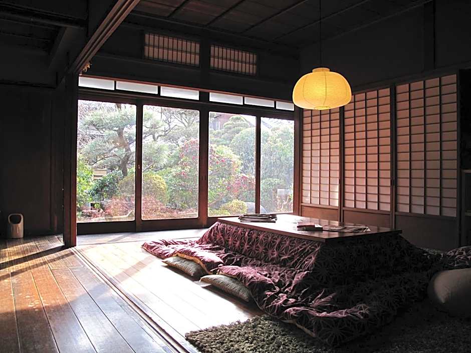 Features tatami (woven-straw) flooring and Japanese futon bedding.