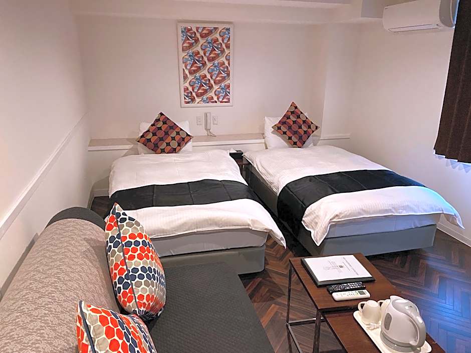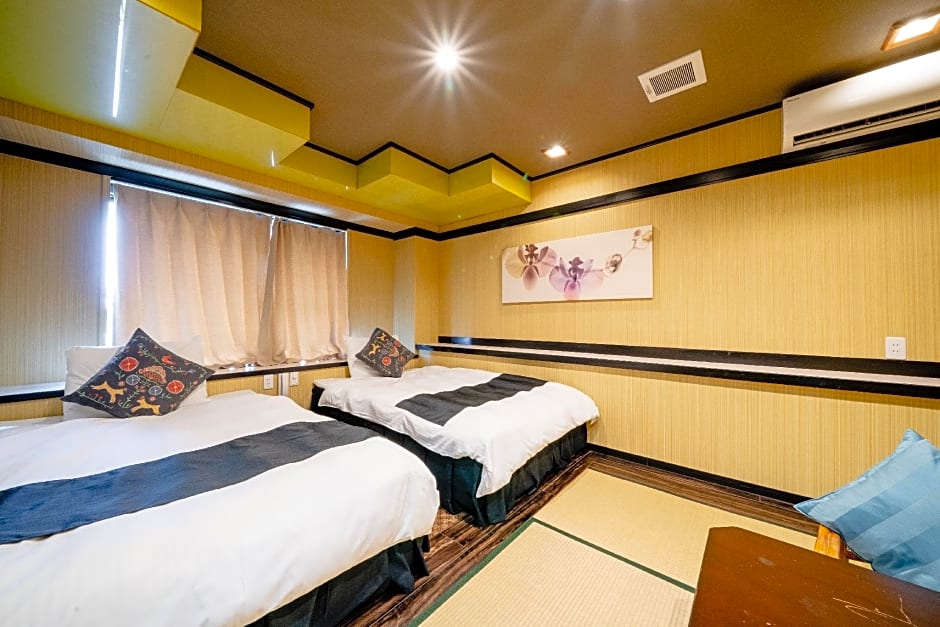 The quadruple room offers air conditioning, tatami, as well as a private bathroom featuring a bath and a shower. The quadruple room features a flat-screen TV, a wardrobe, an electric kettle, a sofa as well as a quiet street view. The unit offers 2 beds.