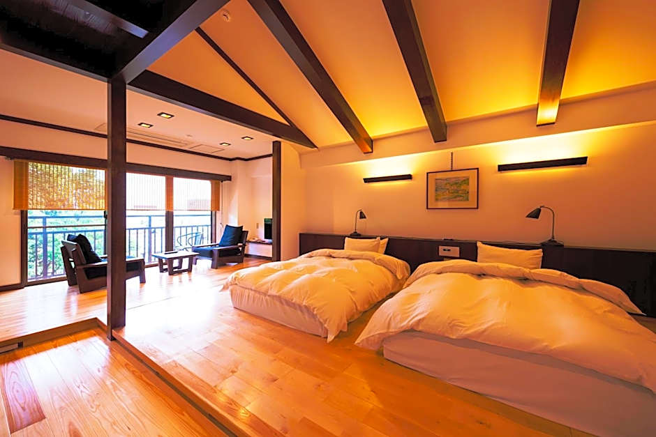 The spacious quadruple room provides air conditioning, tatami, as well as a private bathroom featuring a bath and a shower. The quadruple room offers a seating area, a safe deposit box, an electric kettle, yukata and a flat-screen TV. The unit offers 5 futons.