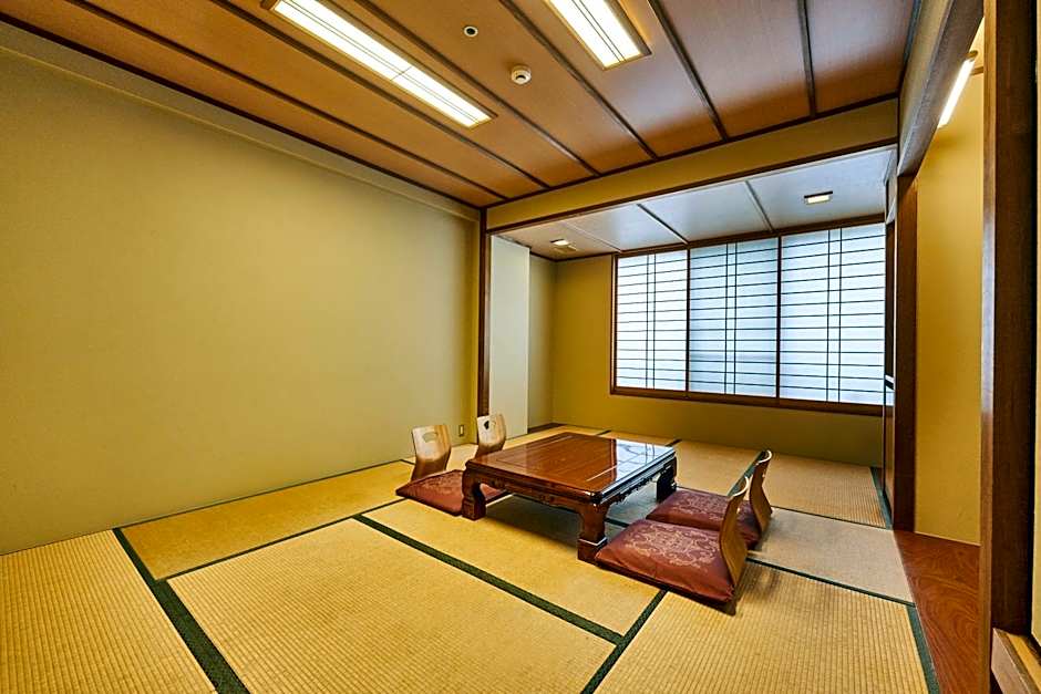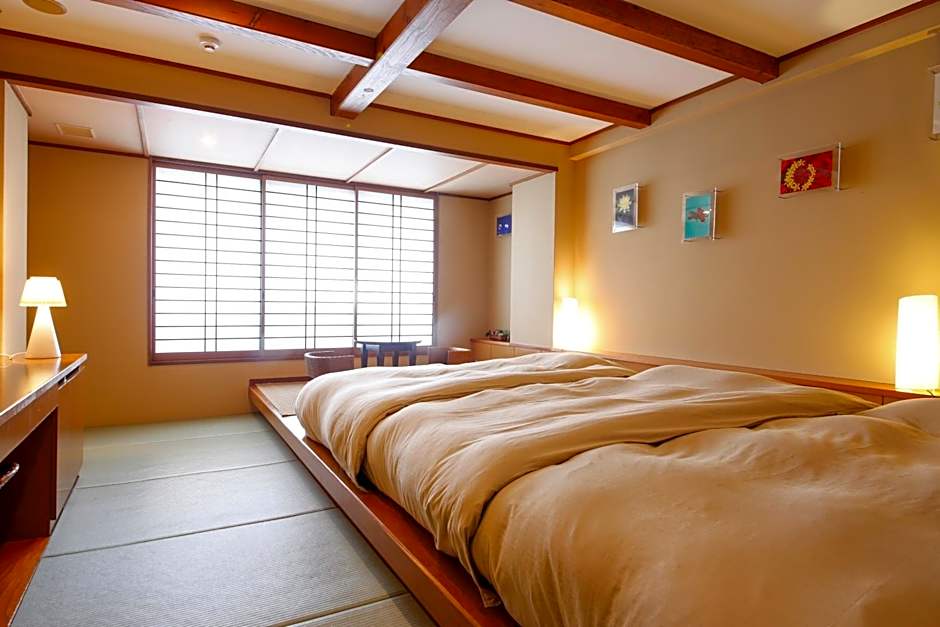 Providing free toiletries, this quadruple room includes a shared bathroom with a bidet, a hairdryer and slippers. This quadruple room is air-conditioned and features a seating area with a flat-screen TV, tatami, a tea and coffee maker, a wardrobe, as well as a safe deposit box. The unit offers 4 futons.