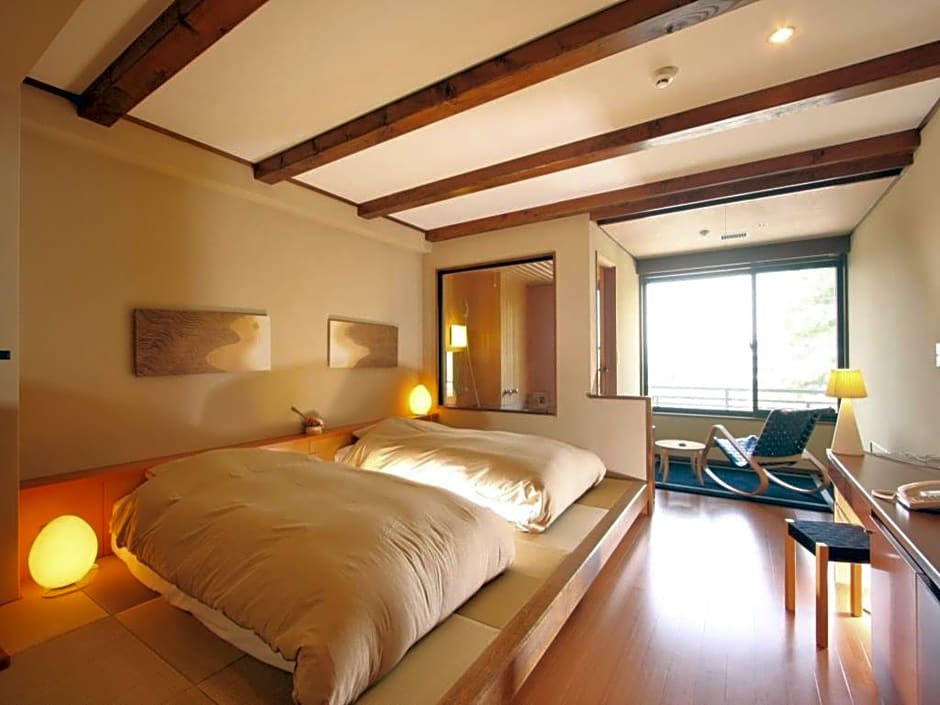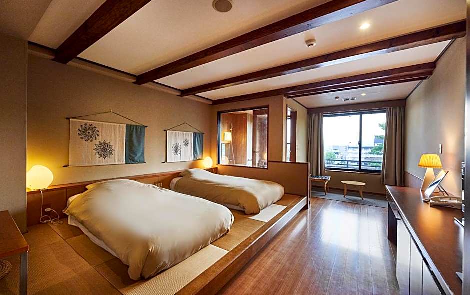 The spacious twin room features air conditioning, tatami, as well as a private bathroom boasting a bath and a shower. The unit has 2 beds.