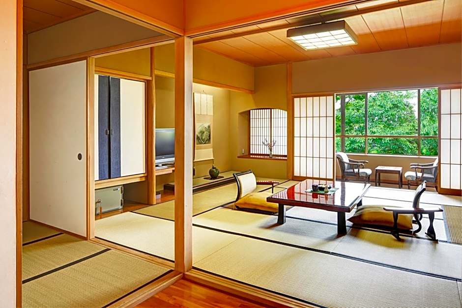 The quadruple room includes a private bathroom, well-fitted with a bath, a shower, a bidet, a hairdryer and slippers. The spacious air-conditioned quadruple room offers a flat-screen TV with satellite channels, tatami, a seating area, a wardrobe as well as garden views. The unit offers 4 futons.