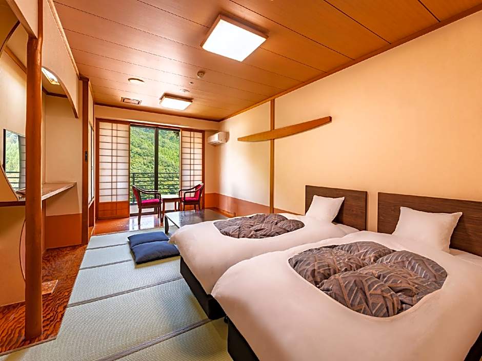 The spacious triple room offers air conditioning, tatami, as well as a private bathroom boasting a bidet and a hairdryer. The triple room features a flat-screen TV, a safe deposit box, an electric kettle, heating as well as mountain views. The unit has 3 futons.