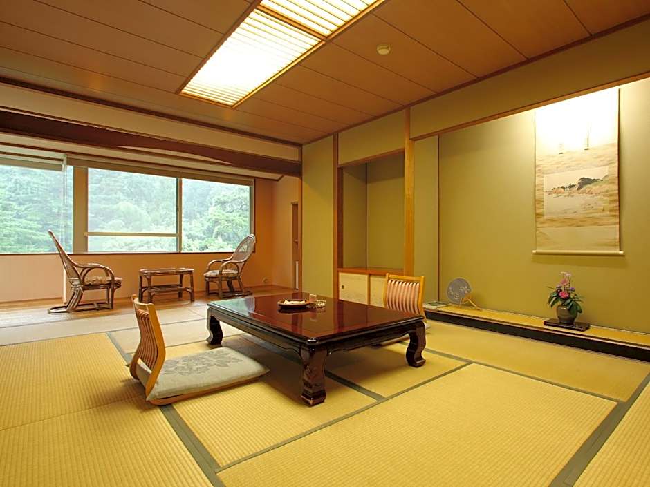 Features tatami (woven-straw) flooring and Japanese futon bedding. This room has a garden view and a seating area. A refrigerator, an electric kettle, and a TV are included.