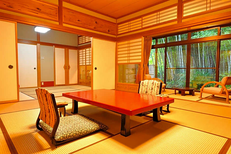 This family room provides a private open-air bath. Offering free toiletries, this family room includes a private bathroom with a bath, a shower and a bidet. The spacious air-conditioned family room offers a flat-screen TV with satellite channels, tatami, a tea and coffee maker, a safe deposit box as well as garden views. The unit has 6 futons.
