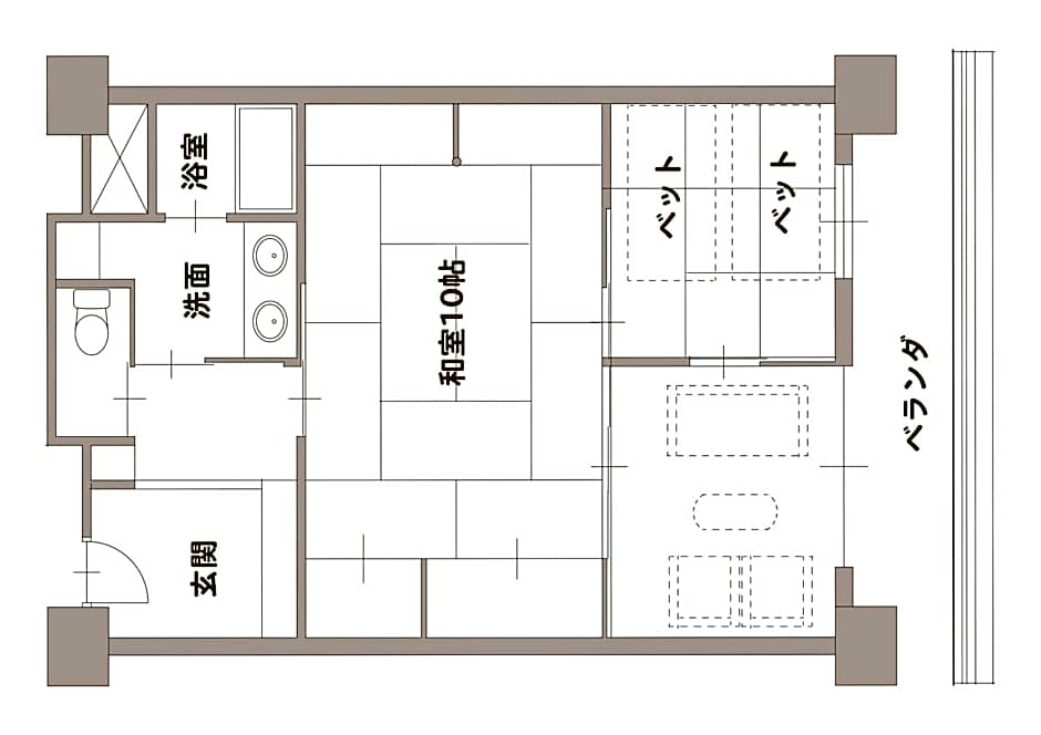 Standard-Huone, Futon, Kylpyamme, Jokinäkymä