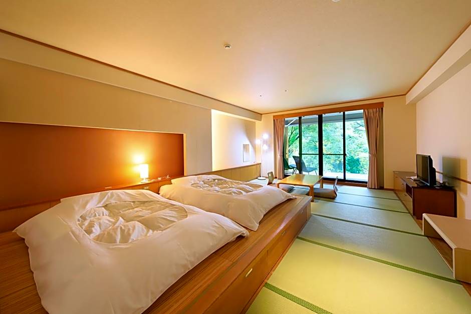The independent space to enjoy the Onsen. Connection with nature. Quietness and space in the room.