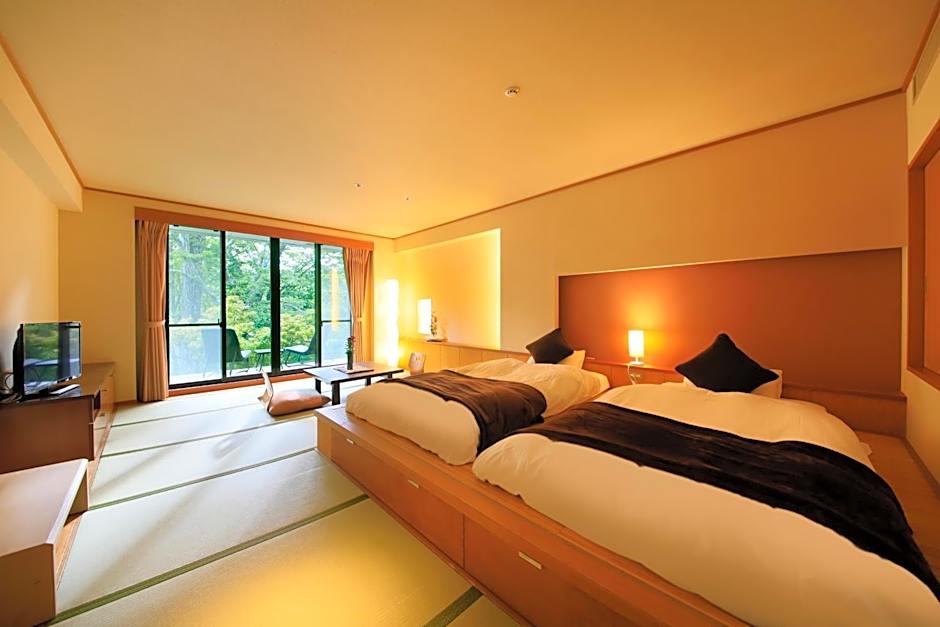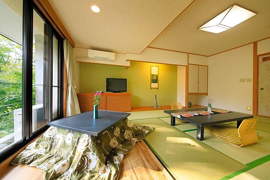 The Hotel offers a Shuttle bus to pick you up from the train station in town as well as drop you off. It is only once a day so make sure you contact them in advance to reserve your spot. They also have a lovely lounge with complimentary drinks and a beautiful view of the forest. All of the workers we spoke to were so kind and helpful. We do not speak Japanese and we had no problems with any communication or requests. Our room was beautiful and spacious and ours included a bath on the porch. The room is traditional style and we were ecstatic. I requested a vegetarian meal in advance and the Hotel made an amazing dinner and breakfast for my partner and I. Cannot say enough good things about our experience here!
