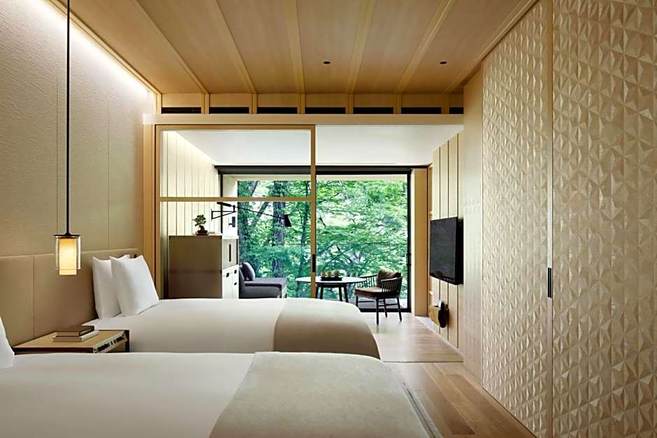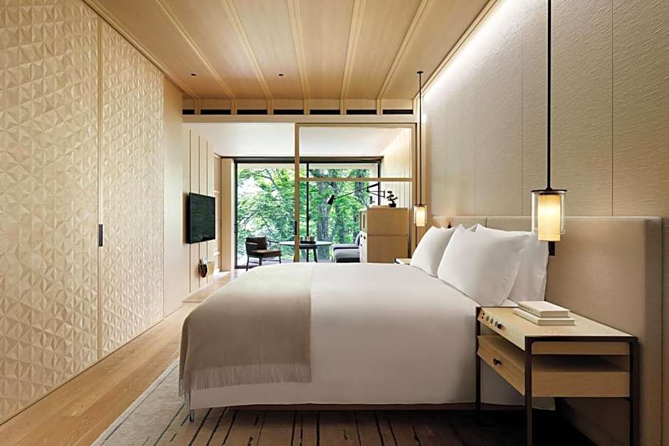 The Ritz-Carlton, Nikko offers a variety of rooms with different views, including Lake Chuzenji View, Riverside Garden View, and Mount Nantai View. Most rooms have a balcony and are non-smoking. The rooms can accommodate either 2 adults and 1 child or 3 adults and 1 child, and have either 1 King size bed or 2 Double beds. The size of the rooms is 614 sqft or 1238 sqft for the suite.