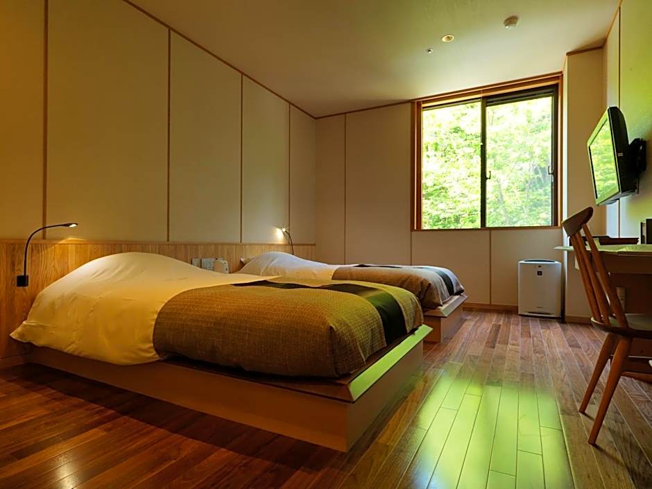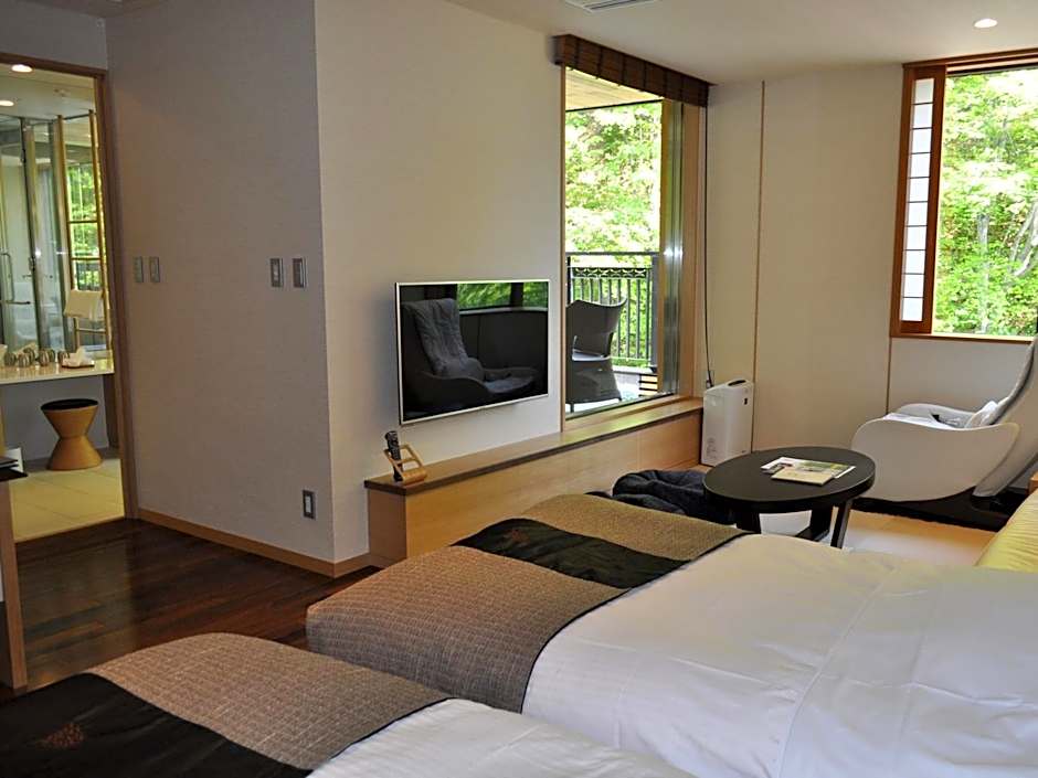 Featuring a private open-air bath and mountain views, this nonsmoking room comes with a seating area on tatami (woven-straw) flooring. The room is equipped with a flat-screen TV, refrigerator and safety deposit box.