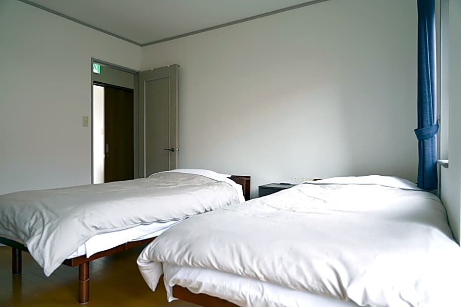The twin room offers air conditioning, tatami, as well as a private bathroom featuring a bath and a shower. This twin room features an electric kettle and a TV. The unit offers 2 futons.