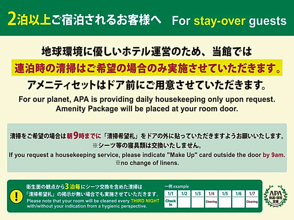 Your reservation at APA Hotel Ogaki Ekimae includes a check-in time of 15:00 and a check-out time of 10:00.