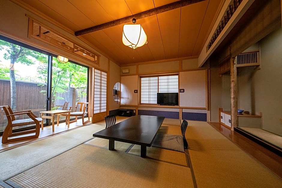 This quadruple room's standout feature is the private open-air bath. Offering free toiletries, this quadruple room includes a private bathroom with a bath, a shower and a bidet. The air-conditioned quadruple room offers a flat-screen TV with cable channels, tatami, a wardrobe, a safe deposit box as well as an inner courtyard view. The unit has 4 futons.