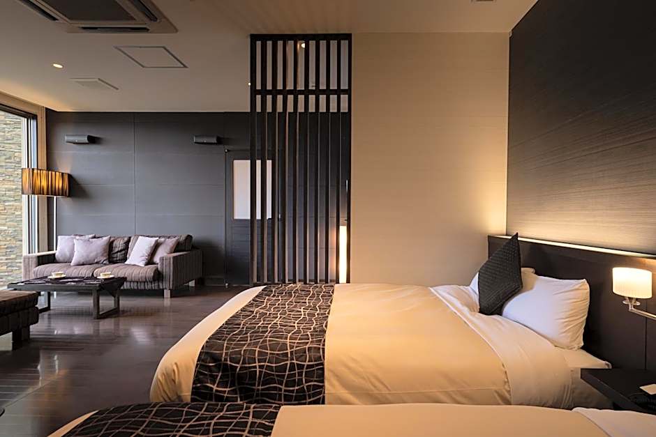 The private open-air bath is the standout feature of this twin room. The spacious twin room features air conditioning, a tea and coffee maker, as well as a private bathroom boasting a bath and a shower. This twin room has executive lounge access, a dining area, a flat-screen TV and a terrace. The unit has 2 beds.