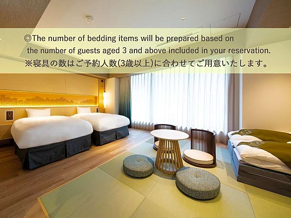 The spacious twin room features air conditioning, a safe deposit box, yukata, a flat-screen TV, as well as sea views. The unit has 4 beds and 2 futons.