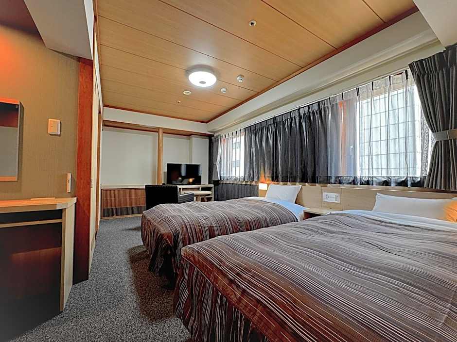 The twin room includes a private bathroom, well-fitted with a bath, a shower, a bidet, a hairdryer and slippers. This twin room is air-conditioned and features a flat-screen TV, tatami, an electric kettle and pajamas. The unit offers 2 beds.