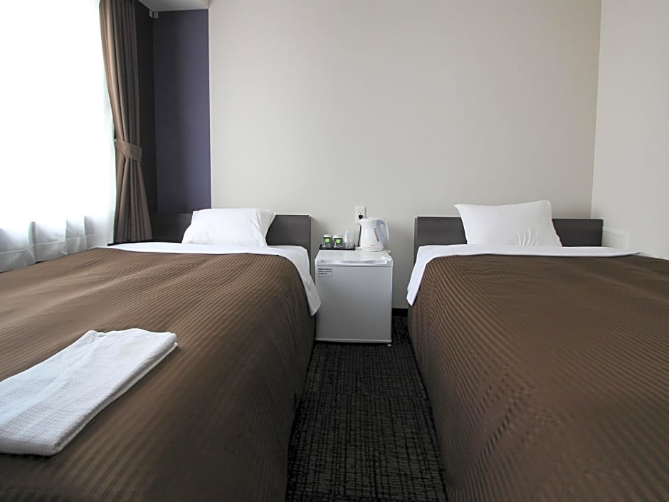 The twin room includes a private bathroom, well-fitted with a bath, a shower, a bidet, a hairdryer and slippers. The twin room provides air conditioning, an electric kettle, a carpeted floor, yukata, as well as a flat-screen TV. The unit offers 2 beds.