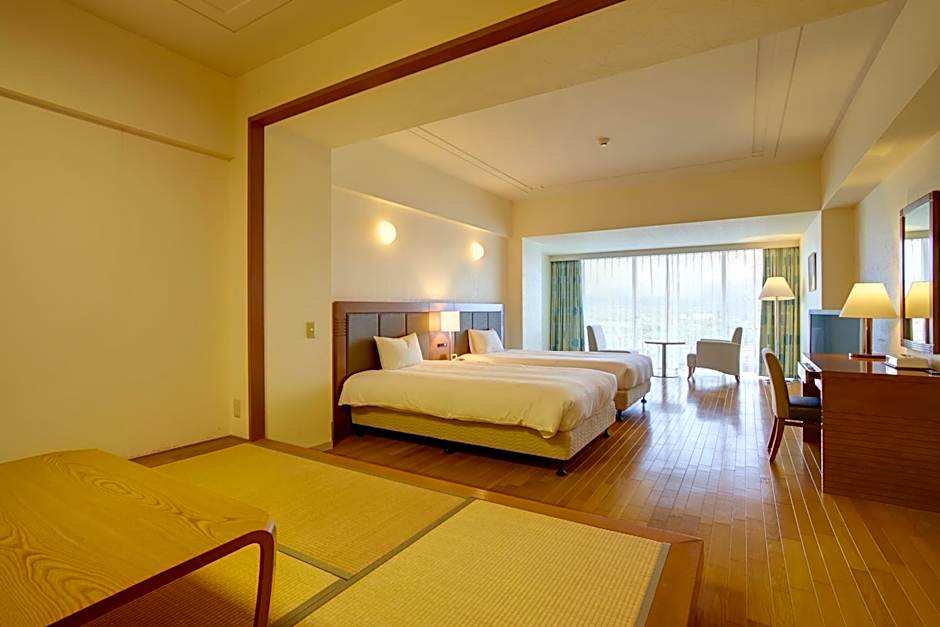 The spacious suite provides air conditioning, a safe deposit box, as well as a private bathroom featuring a bath and a shower. Guests can make meals in the kitchenette that is equipped with a stovetop, a refrigerator and an electric kettle. This suite features yukata, heating, a flat-screen TV and a balcony. The unit offers 3 beds.