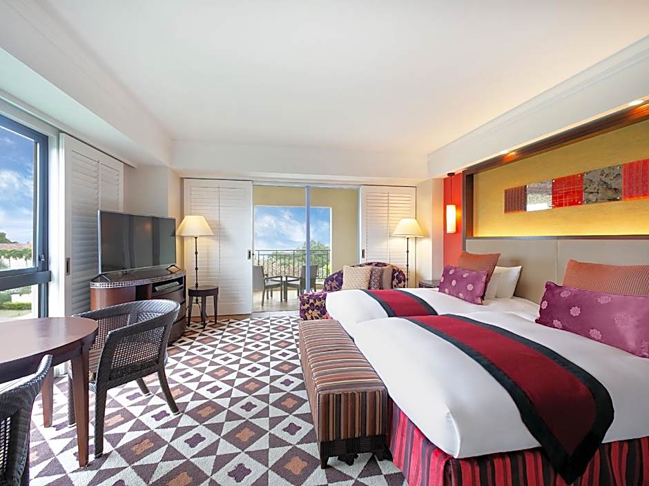 This hotel is amazing. The room was enormous, with balcony and the bathroom had a HUGE shower and a bathtub. Breakfast was included in the price and I have never seen such a huge selection of Japanese and international food. The pool area is massive and clean (towels are provided) and the gardens are beautiful and well maintained. The absolute highlight was the beach, right in front of the hotel, with loungers and umbrellas. As many have already written, the hotel is quite remote. This adds to the beauty of its location but means that, if you don't want to eat in the hotel restaurants, there are really only a pizza restaurant and a burger place within walking distance. If you have a car (we did) there are loads of fabulous Okinawan restaurants a couple of kilometers away. I would highly recommend this hotel for absolute relaxation in a luxurious environment.