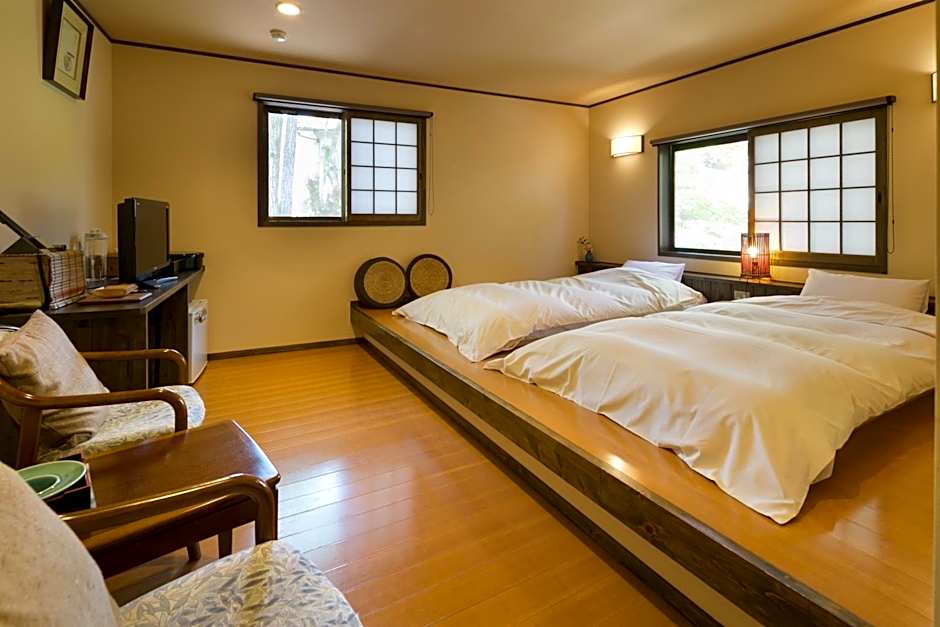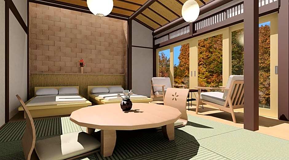 The private open-air bath is the standout feature of this family room. Featuring free toiletries, this family room includes a private bathroom with a bath, a bidet and a hairdryer. The spacious air-conditioned family room features a flat-screen TV with streaming services, tatami, soundproof walls, a mini-bar as well as mountain views. The unit has 2 beds and 3 futons.