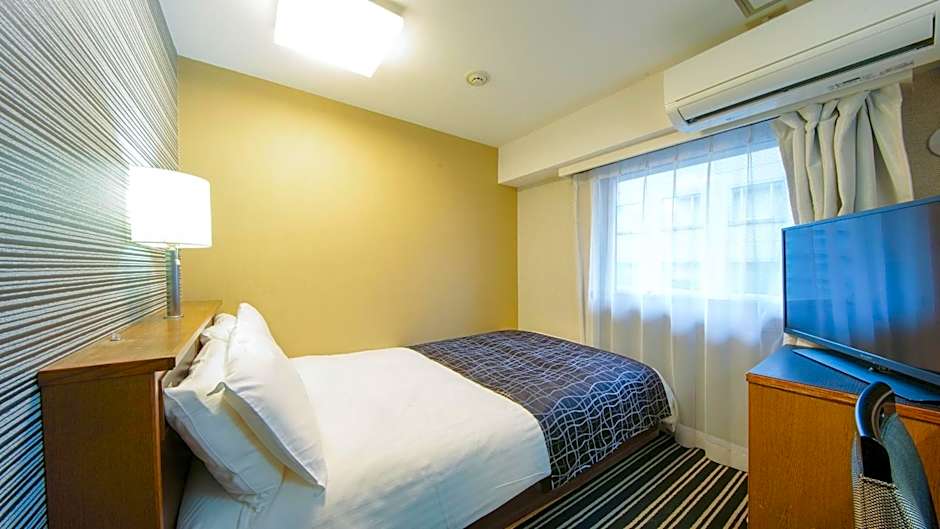 Features a semi-double bed (47 in wide). Air-conditioned room with wood furnishings, an electric kettle with green tea, and a fridge. The private bathroom includes a bathtub and toiletries. Video-on-demand movies are available for purchase.