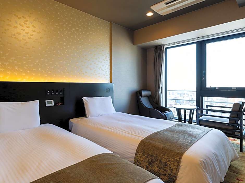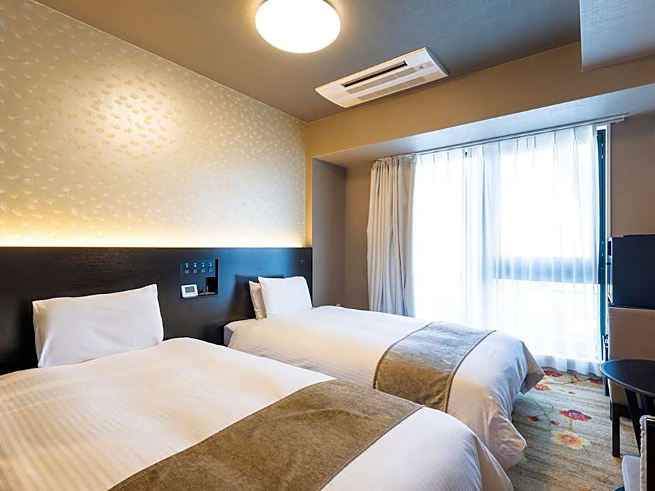 The twin room includes a private bathroom, well-fitted with a bath, a shower, a bidet, a hairdryer and slippers. The air-conditioned twin room provides a flat-screen TV, an electric kettle, a carpeted floor, yukata as well as city views. The unit offers 2 beds.