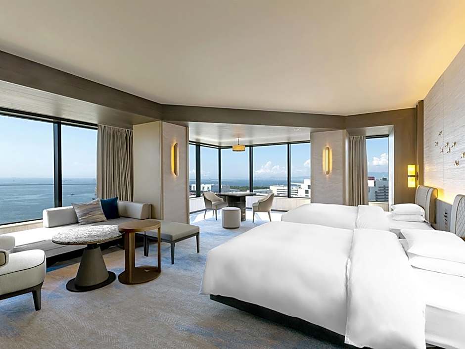 The view is great, you can see Osaka Bay pretty well. The room is comfortable and nice, they have everything you need to stay for a good night. Plenty of space in the room for 2 people, even after opening all the luggage. The mirror is heated so it's clear after showering. Hot water comes out pretty fast, and it fills the bathtub in a minute or two. The staff are welcoming and kind, lots of service available.