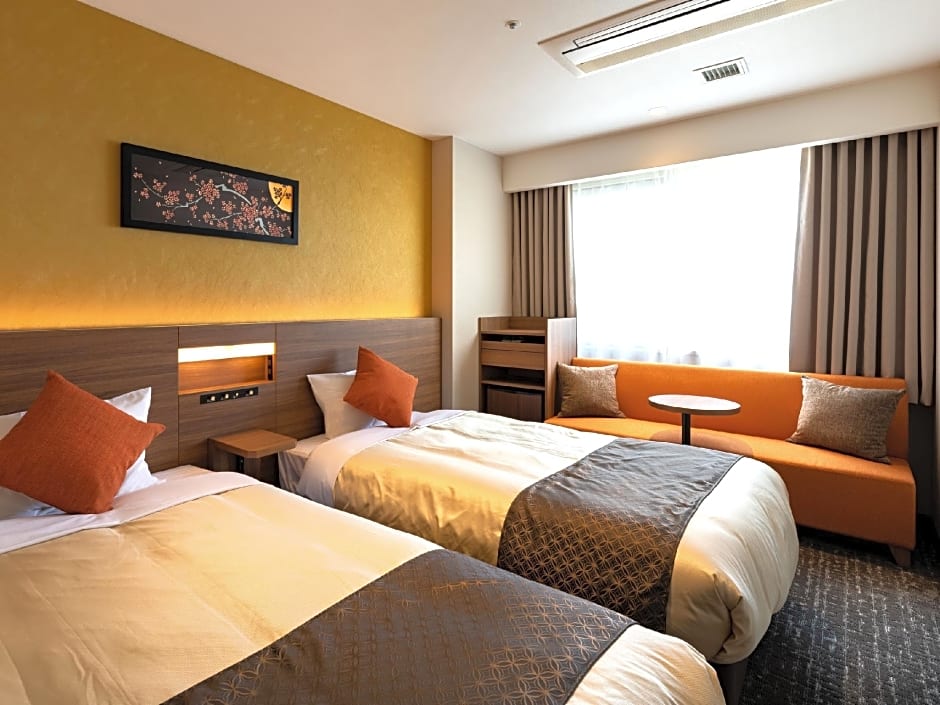 Great newer hotel, nice rooms, clean with a nice onsen. Great breakfast in the rooftop dining room. Helpful staff.
