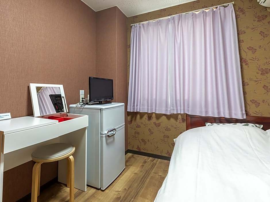Great hotel for women! I have tried several, and It is the best budget hotel in the area! The best things are that the female bathrooms and shower are separate and very clean! You get your own small room, which is very nice and comfortable and feels safe! The room is equipped with AC, a small fridge, coat hanger, a small desk, a small TV, a cabinet for storage and hanging clothes, and a window! The rooms have always been clean and nice! You also get a free onsen ticket for the local onsen when you check in!!
